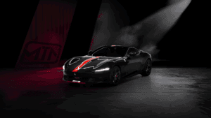 Inside, the cabin exudes understated elegance. Premium black leather with red stitching, polished aluminum controls, and a driver-focused layout create a cockpit that balances brutal power with luxurious comfort. The advanced digital display adapts to your speed, keeping the experience focused and immersive. Every detail, from the air vents to the engine start button, is precision-engineered for excellence.